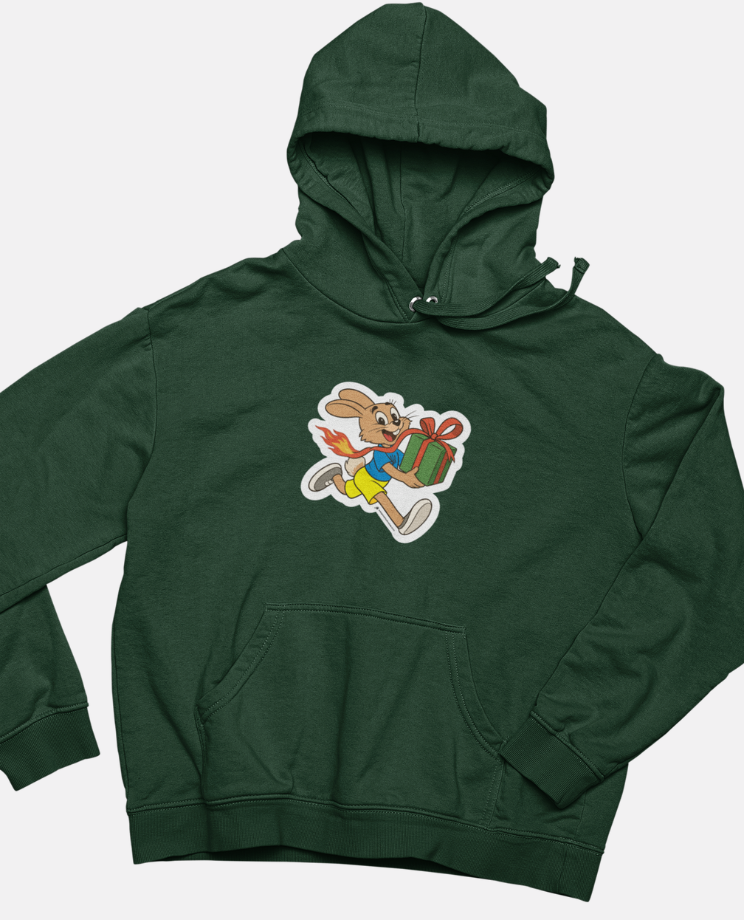 The hoodie is made from a blend of 80% combed cotton (OEKO-TEX certified) and 20% polyester, with a 100% cotton lining. It features a relaxed fit with dropped shoulders and no side seams.