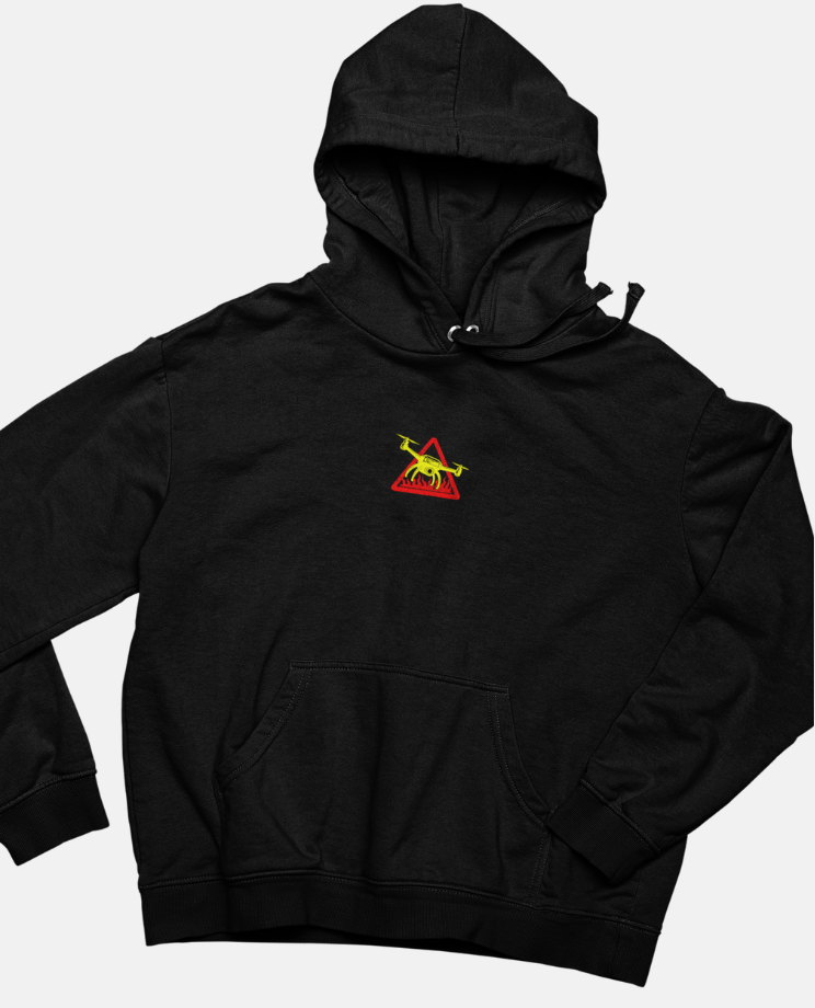 The hoodie is made from a blend of 80% combed cotton (OEKO-TEX certified) and 20% polyester, with a 100% cotton lining. It features a relaxed fit with dropped shoulders and no side seams.