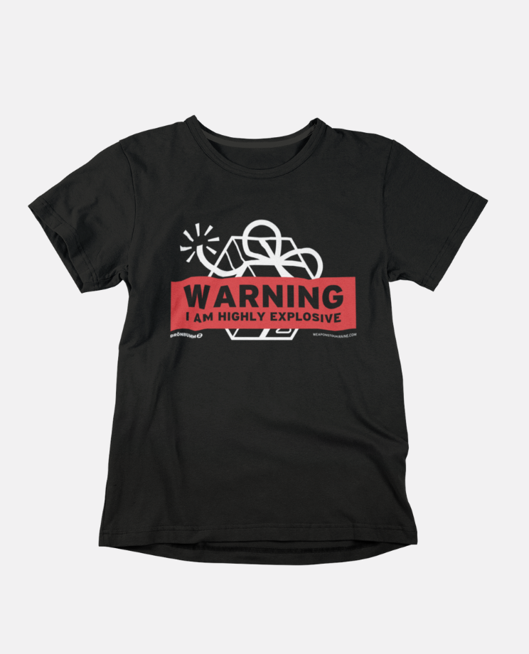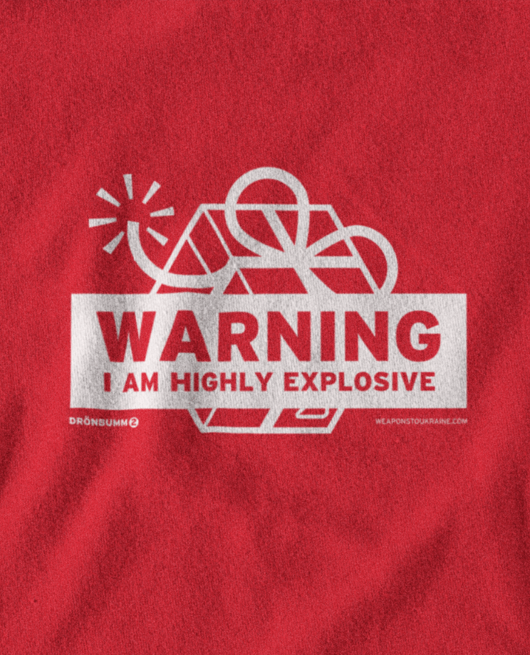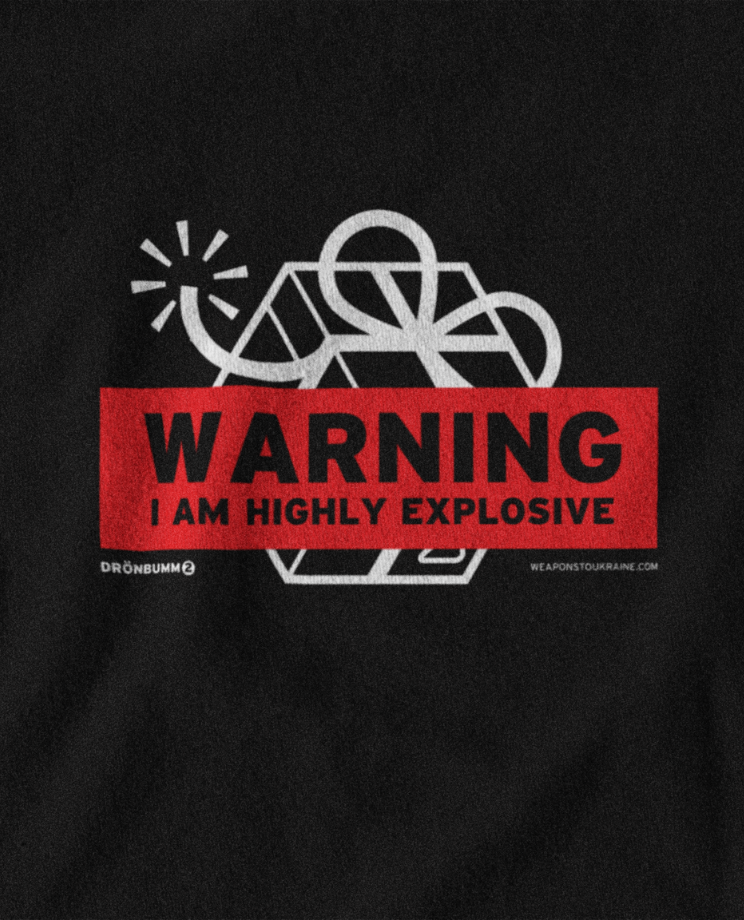 Sometimes you need to warn people around you that you're a bit explosive. We made this t-shirt exactly for those days when you're running around like crazy and everyone should know that there’s a few kilos of explosives hanging under your propeller. Artwork by Dodo Dobrík.