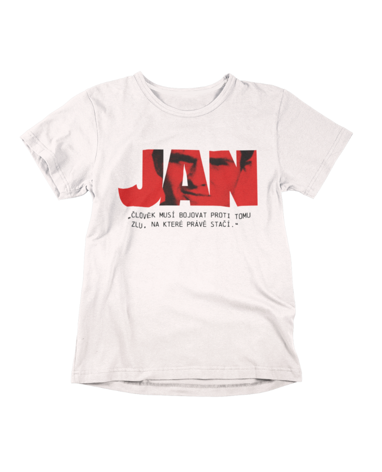 Bílé nebo černé tričko na památku Jana Palacha, který 16. ledna 1969 obětoval svůj život, aby se postavil proti ruské okupaci Československa. Autorem grafického návrhu je designer Dodo Dobrík.