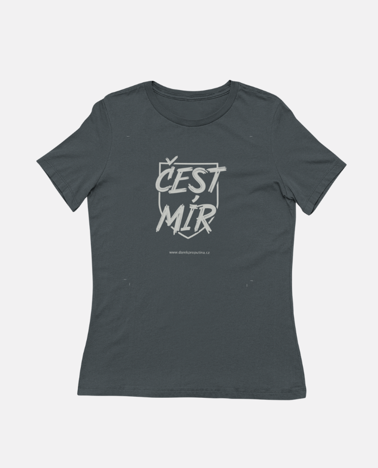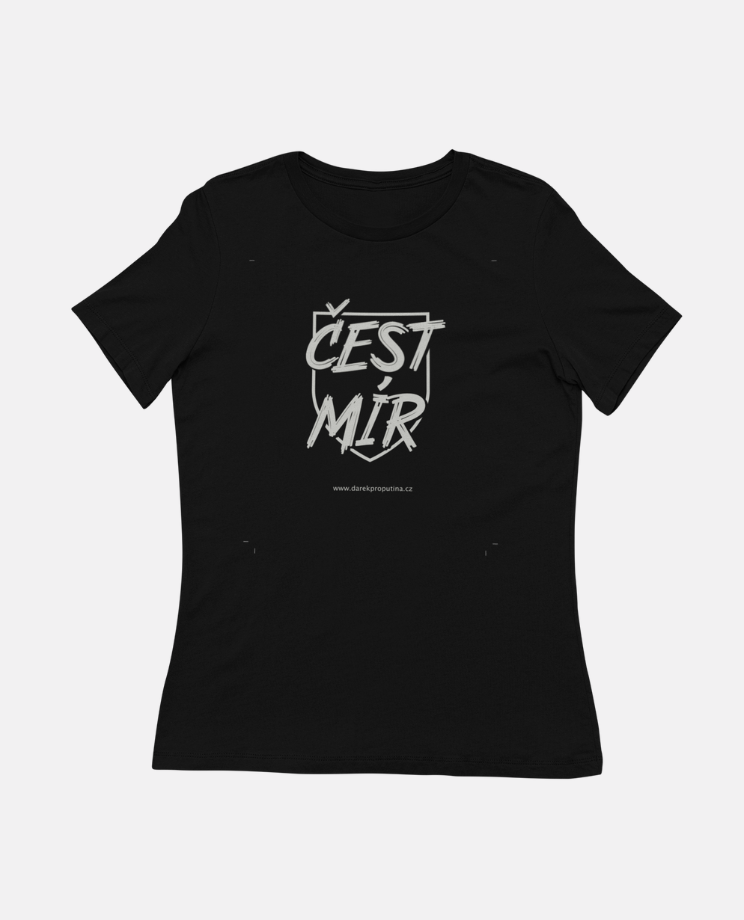 Kvalitní černé dámské tričko s motivem loga kampaně na nákup helikoptéry Čestmír pro ukrajinskou armádu. Nákupem trička podpoříte další fungování projektu Dárek pro Putina. Autorem grafiky je Dodo Dobrík.