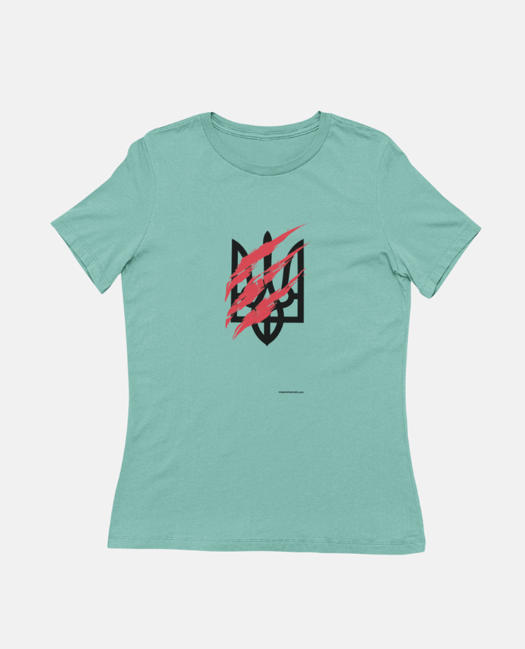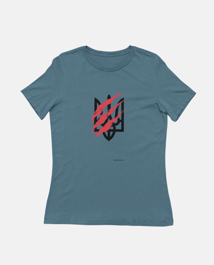 Ukrajina se už tři roky neuvěřitelně brání russké přesile a my všichni na to nesmíme zapomínat. Dámské tričko ke třem letům kuráže s motivem od grafika Doda Dobríka.