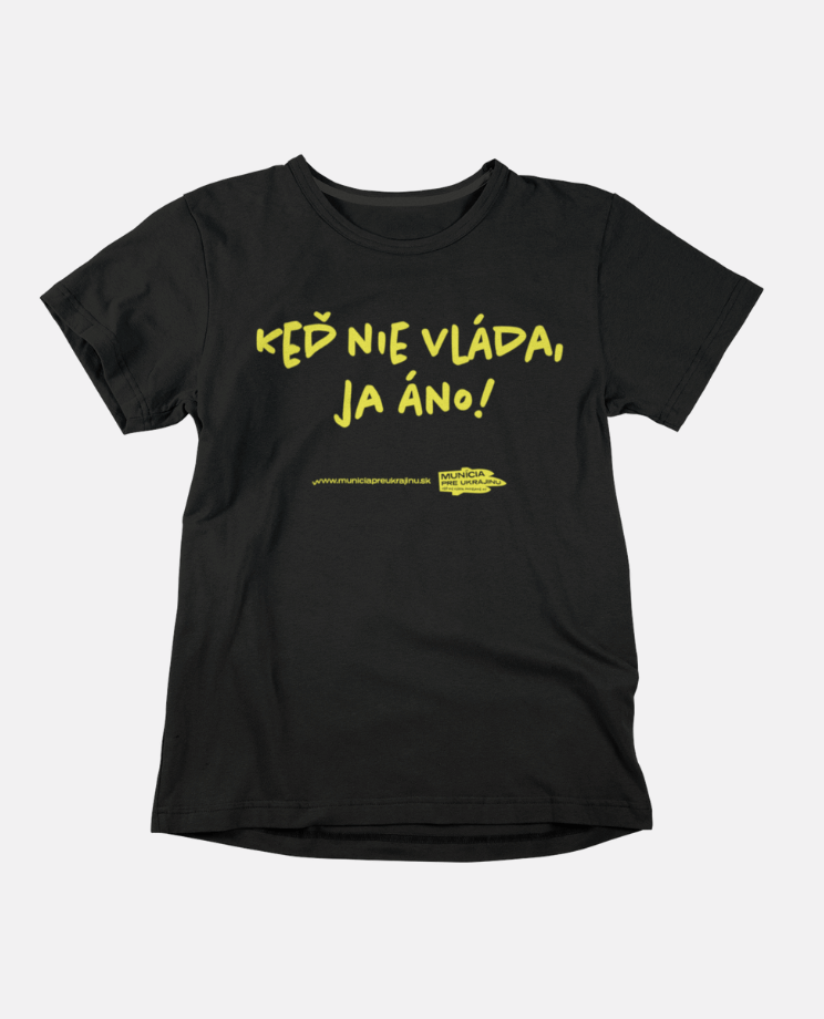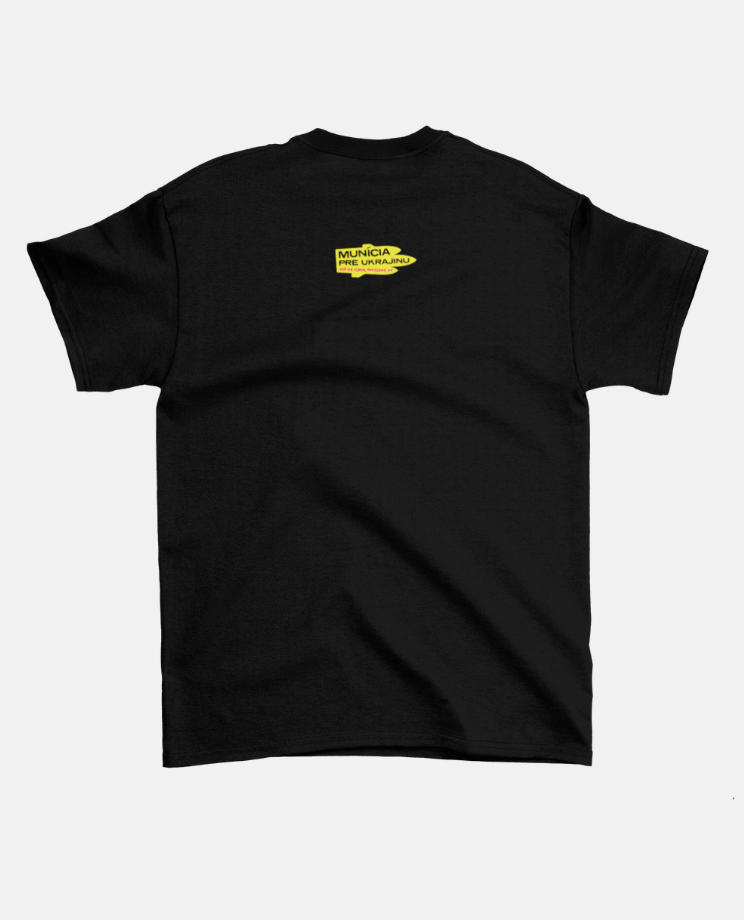 Kvalitní černé tričko s nápisem kolekce Municia pro Ukrajinu. Autorem grafiky je slovenský designér Dodo Dobrík.
