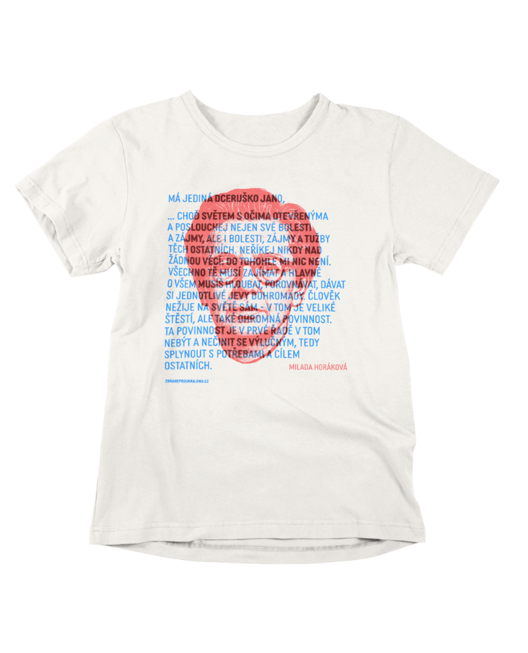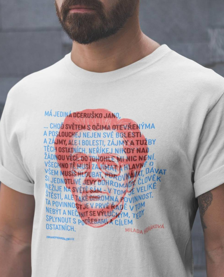 Tričko k výročí zavraždění Milady Horákové, jedné z nejstatečnějších žen v naší moderní historii. Milada Horáková byla česká právnička, politička, demokratka a bojovnice za práva žen. Po komunistickém převratu v roce 1948 byla obviněna ze spiknutí proti republice a v roce 1950 popravena v politickém procesu. Autorem grafiky je Dodo Dobrík.