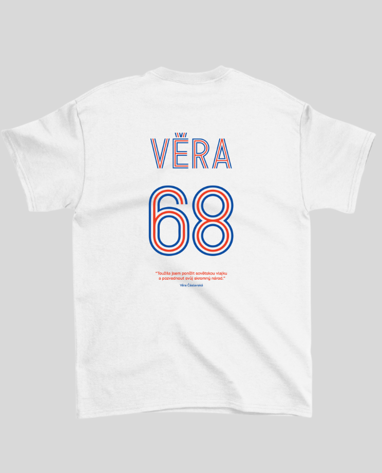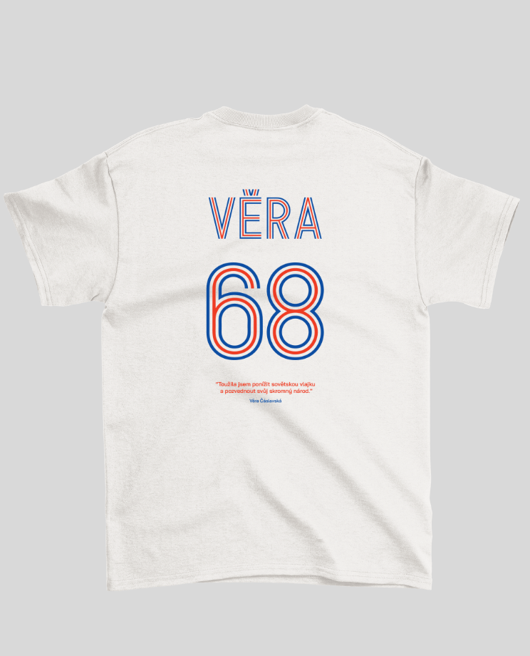 Tričko na památku Věry Čáslavské - ženy, která se dokázala postavit ruským okupantům, komunistům i proti těm, kteří v Česku šířili nenávist. Byla jednou z našich nejlepších sportovkyň a obětovala svobodě celý svůj život i kariéru. Grafiku vytvořil Dodo Dobrík.