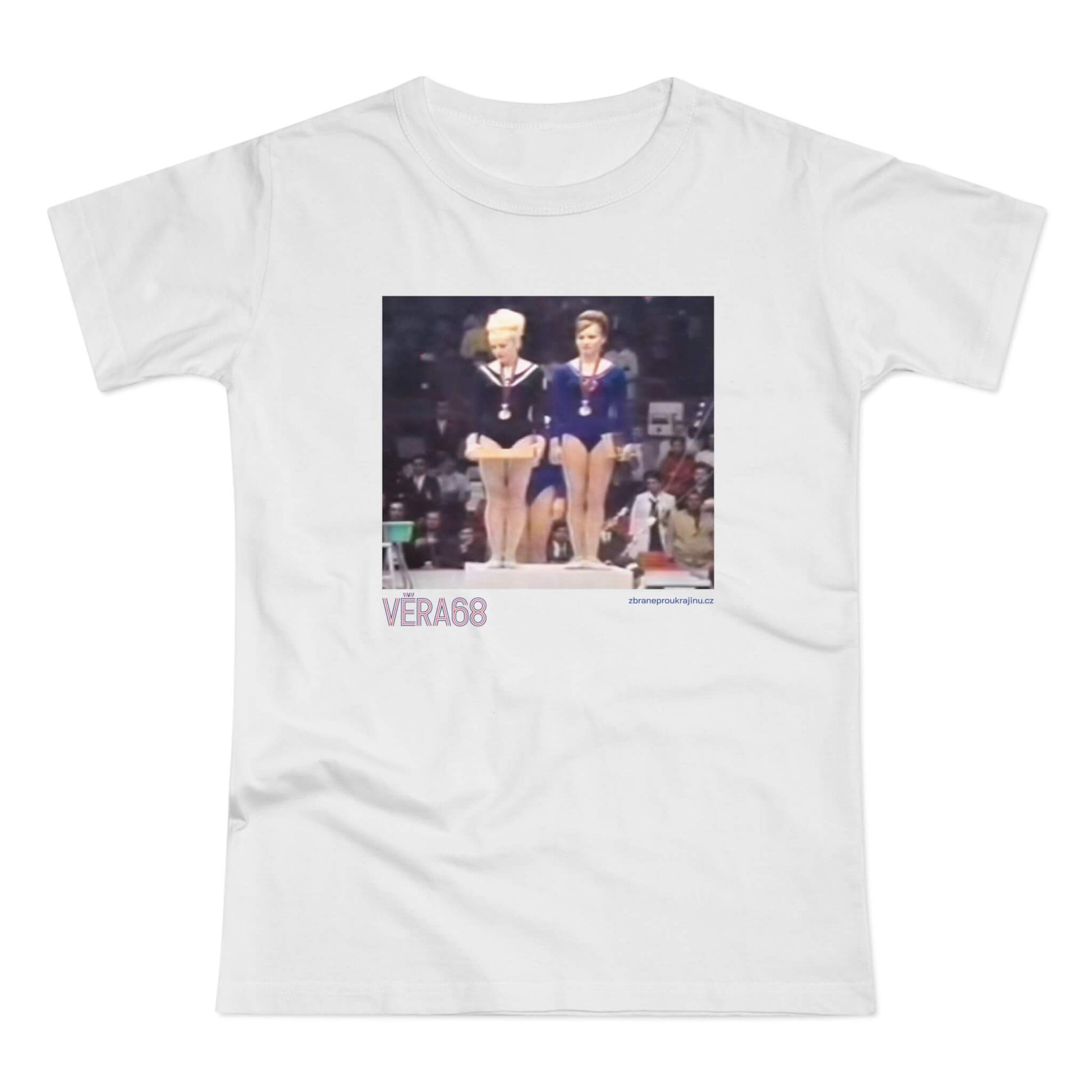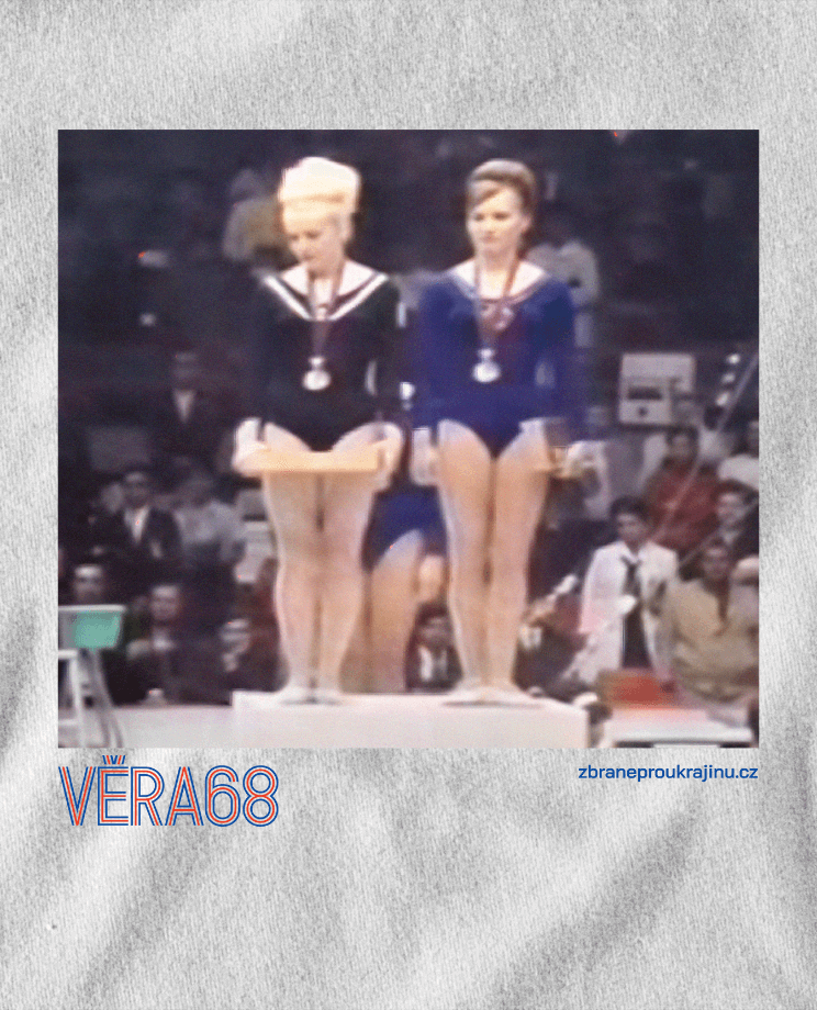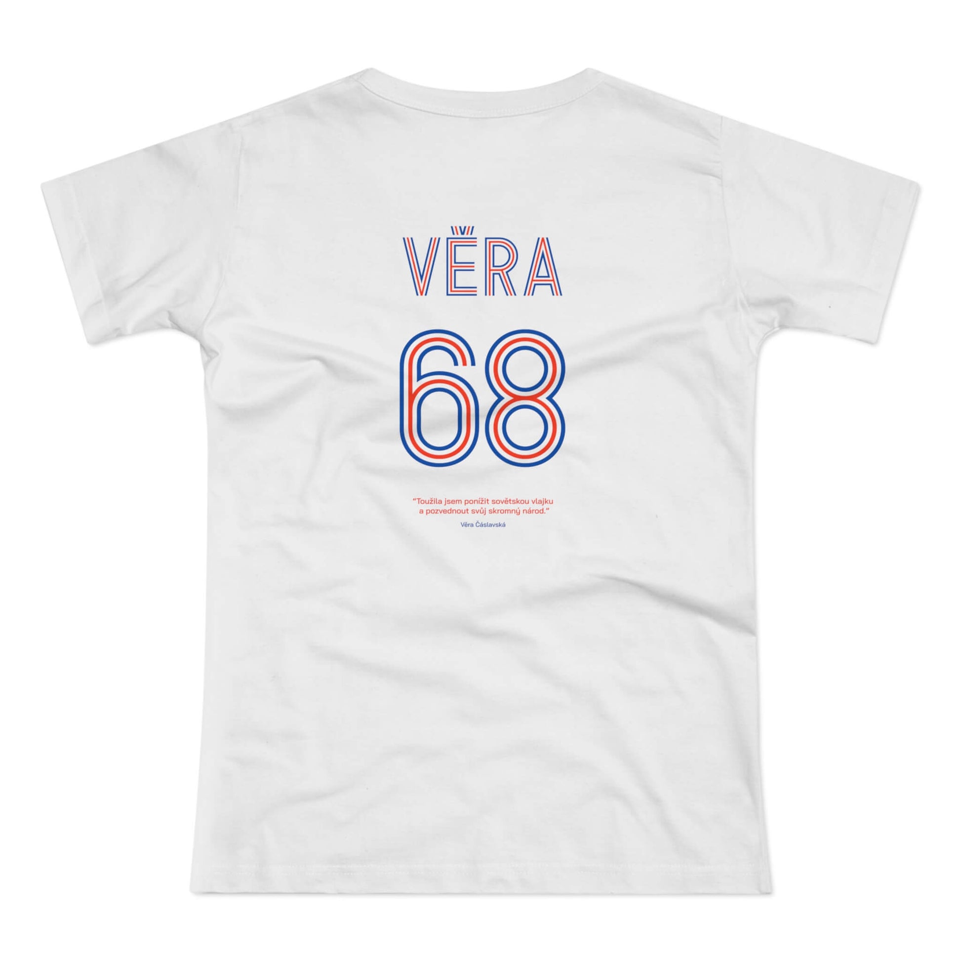 Dámské tričko na památku Věry Čáslavské - ženy, která se dokázala postavit ruským okupantům, komunistům i proti těm, kteří v Česku šířili nenávist. Byla jednou z našich nejlepších sportovkyň a obětovala svobodě celý svůj život i kariéru. Grafiku vytvořil Dodo Dobrík.