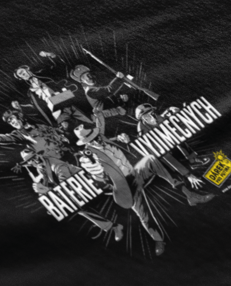 Bílá nebo černá hřejivá mikina s dlouhým rukávem a motivem šesti superhrdinů československé historie z kampaně Baterie výjimečných. Autorem ilustrací je český výtvarník Lukáš Fibrich, o grafickou úpravu se postaral slovenský grafik Dodo Dobrík.