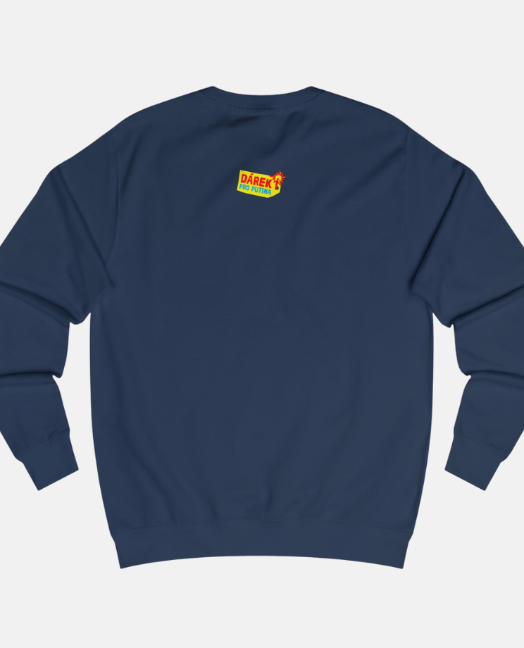 Tmavě modrá hřejivá mikina s dlouhým rukávem s motivem hry pacman od slovenského výtvarníka Doda Dobríka.
