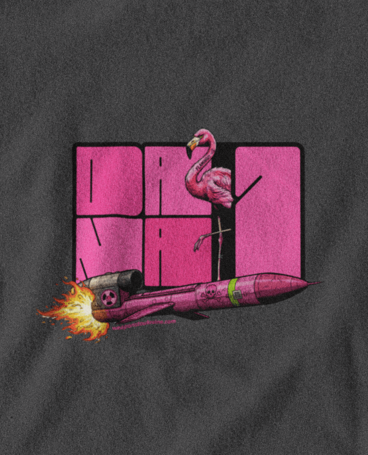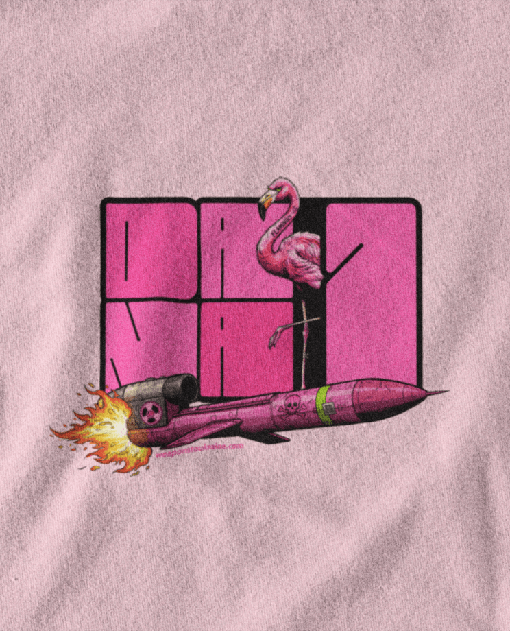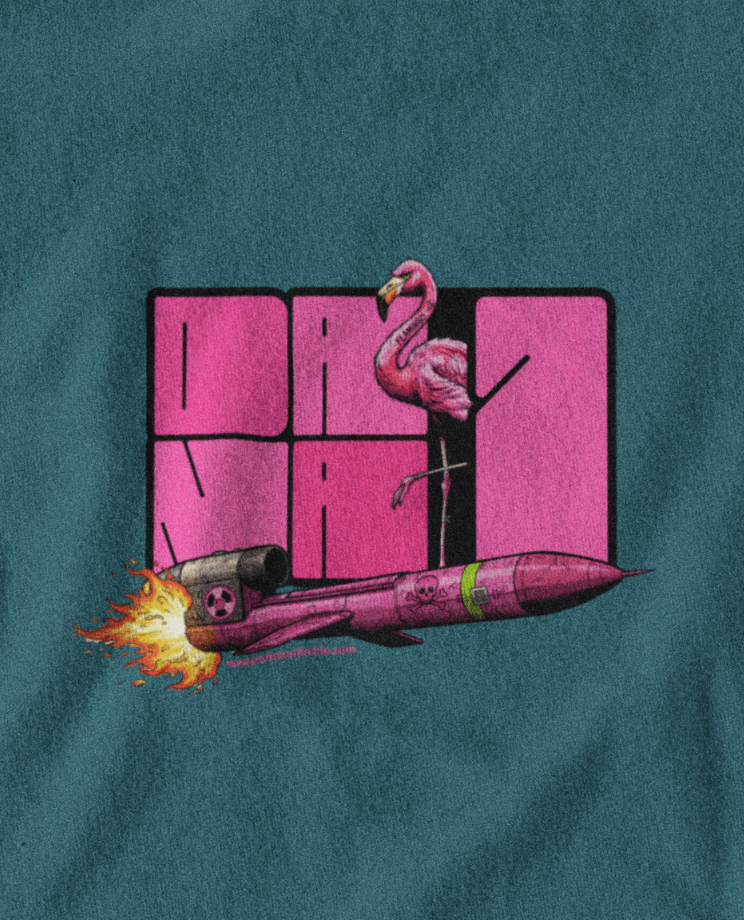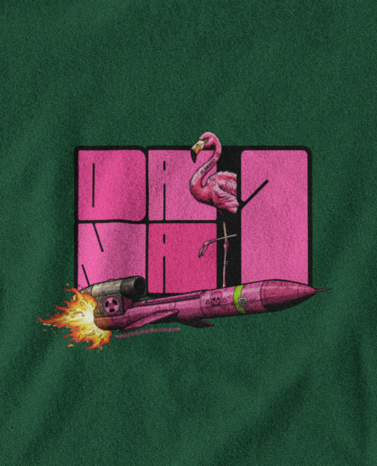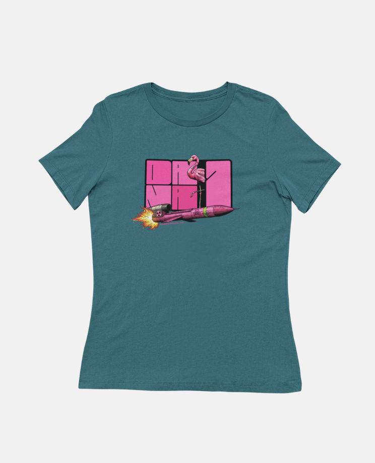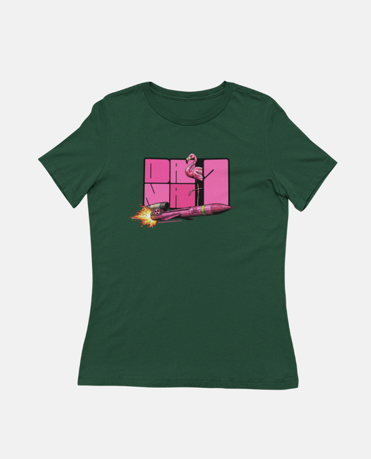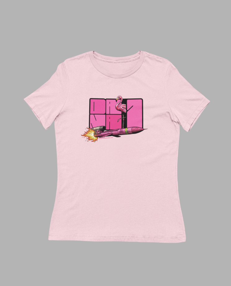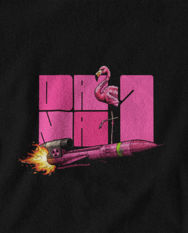 Ukrajina má vlastní raketu s plochou dráhou letu. Jmenuje se FP-5 Flamingo a legenda praví, že když vznikly první vzorky tak nějakou vadou měla raketa růžovou barvu. A tak jsme zvedli telefon a zeptali se, jestli by nešla jedna taková raketa koupit a pojmenovat po jedné velmi výjimečné ženě. A ze sluchátka se ozval smích a souhlas. Autorem grafiky je Dodo Dobrík.