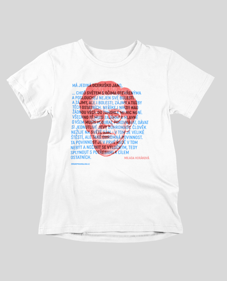 Tričko k výročí zavraždění Milady Horákové, jedné z nejstatečnějších žen v naší moderní historii. Milada Horáková byla česká právnička, politička, demokratka a bojovnice za práva žen. Po komunistickém převratu v roce 1948 byla obviněna ze spiknutí proti republice a v roce 1950 popravena v politickém procesu. Autorem grafiky je Dodo Dobrík.