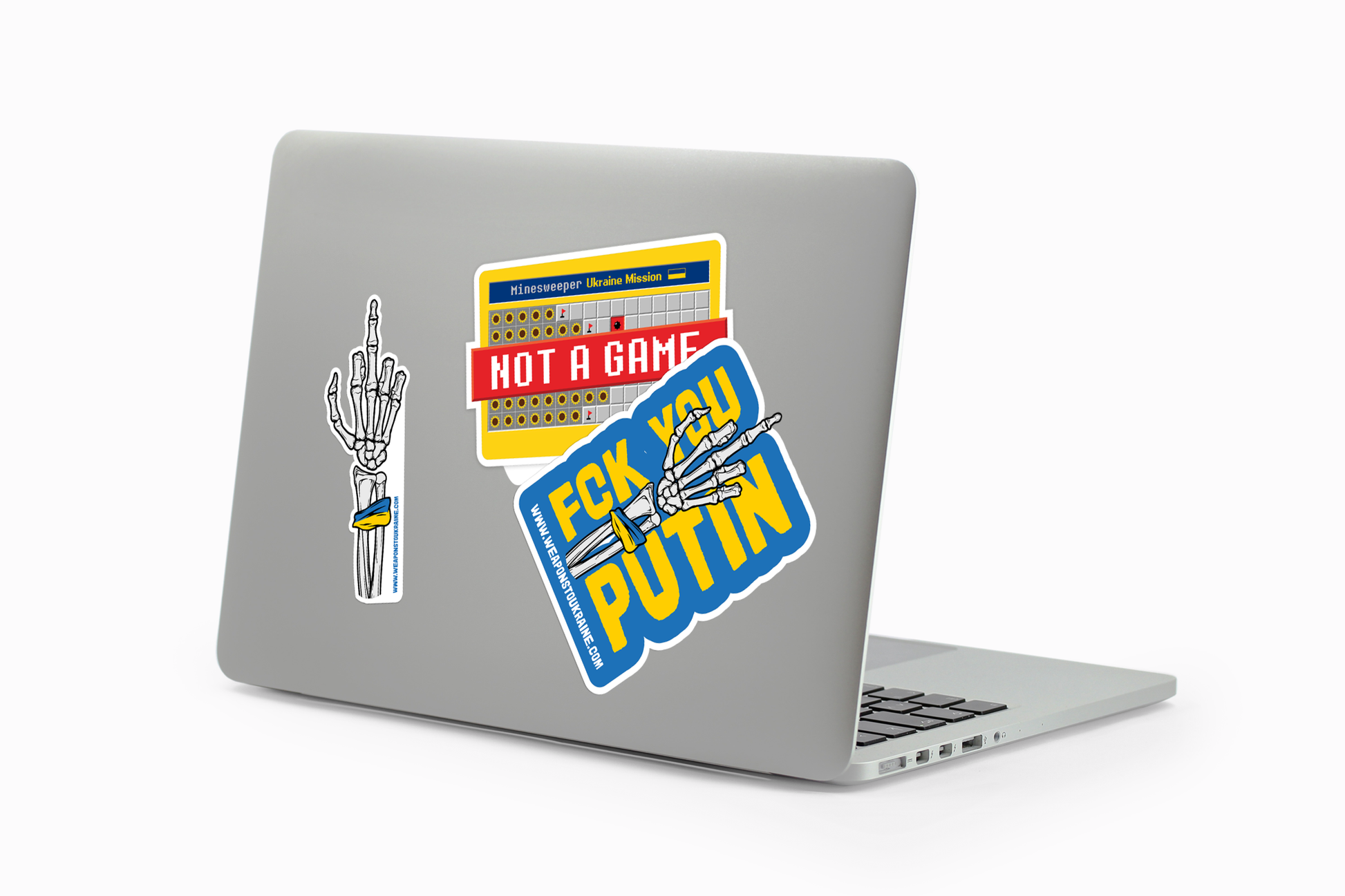 Sada troch samolepiek na podporu projektu Darček pre Putina. V balíčku nájdete dve výrazové samolepky Fuck You Putin a jednu samolepku s motívom kampane Božena. Autor grafiky je Dodo Dobrík.